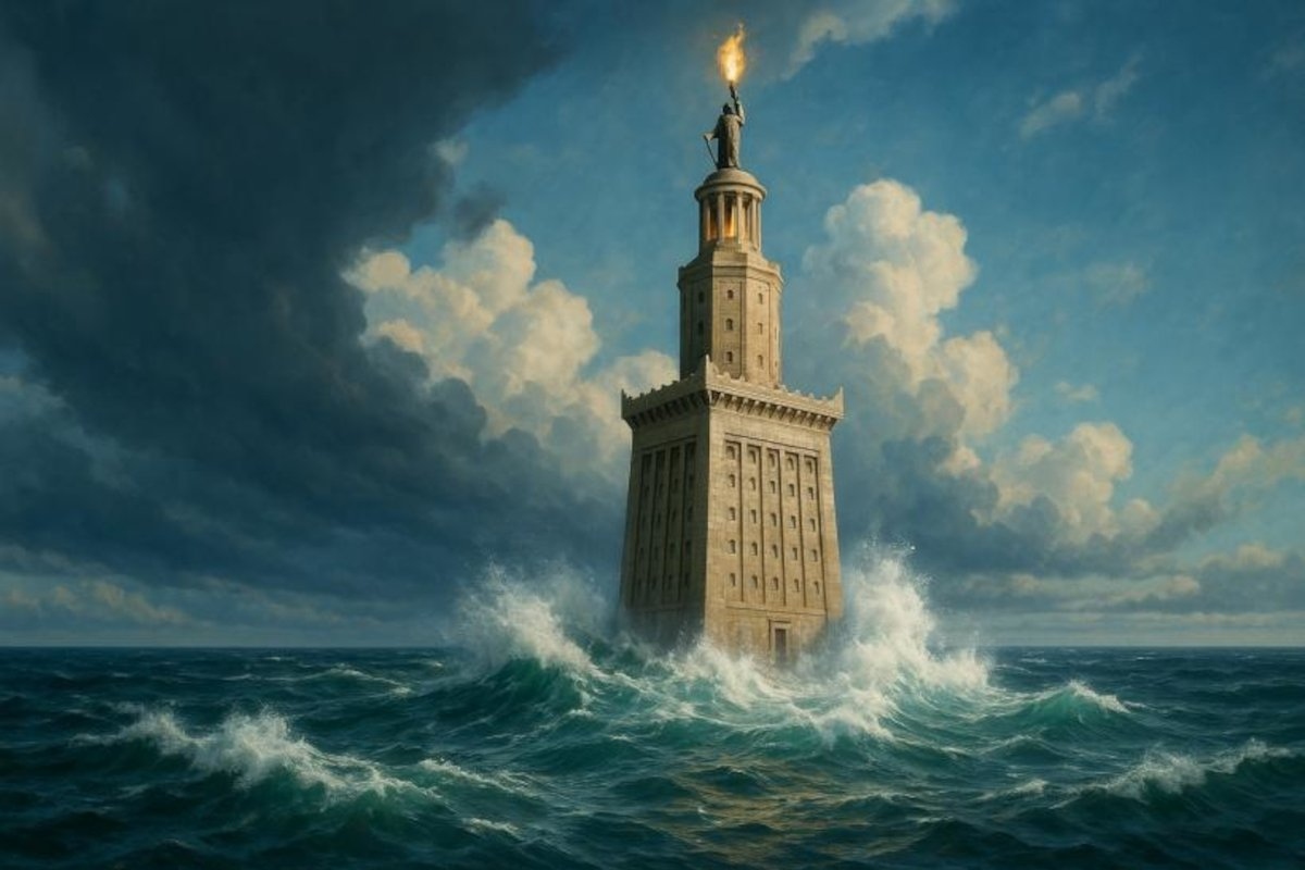 Il Faro di Alessandria fu costruito all’inizio del III secolo a.C., sotto il regno di Tolomeo I Soter. Fu realizzato dall’architetto greco Sostrato di Cnido e si ergeva per oltre 100 metri sull’isola di Pharos, guidando in sicurezza le navi attraverso le insidiose acque costiere di Alessandria.