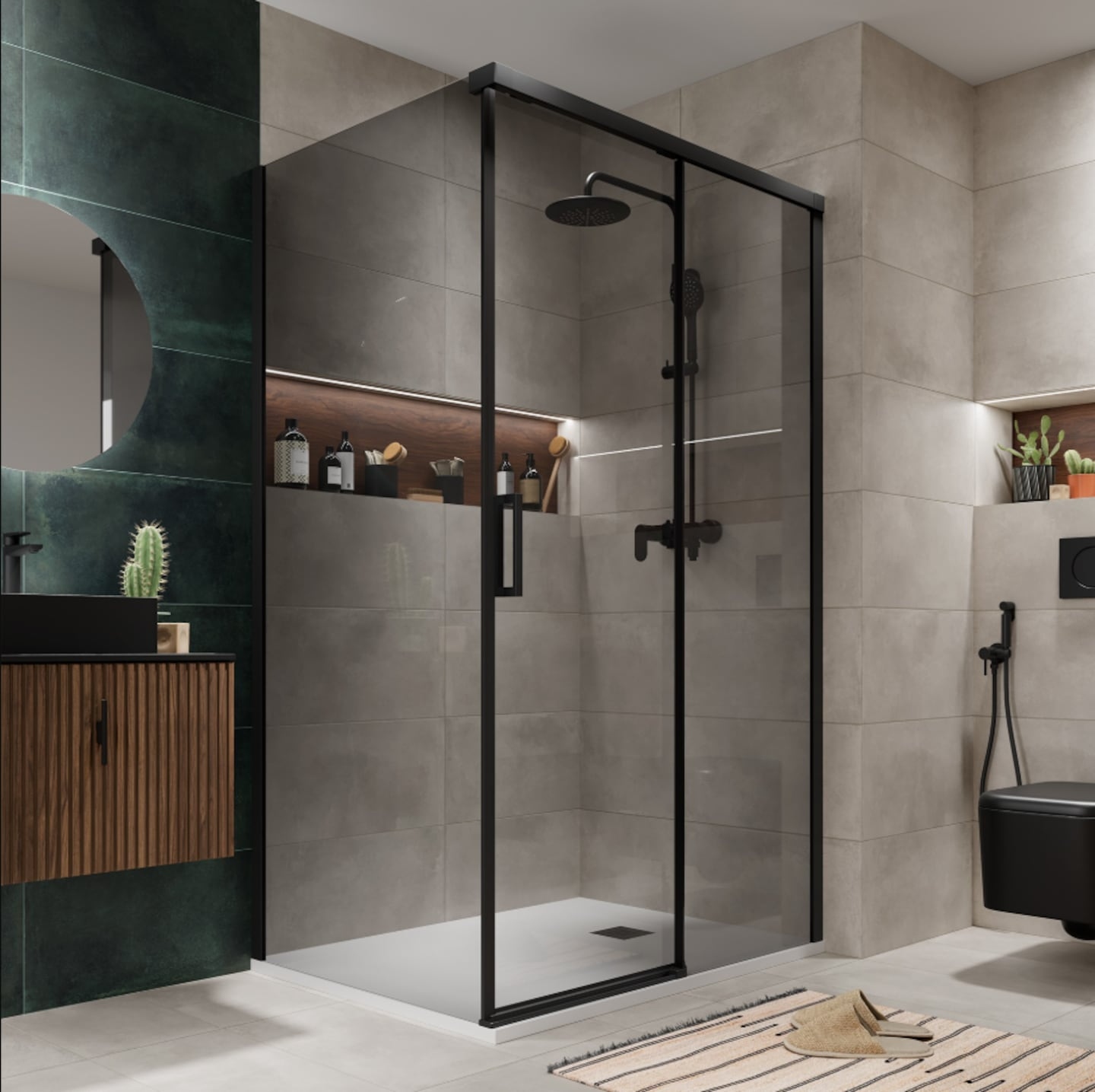 Questo modello si distingue per il suo design elegante in nero opaco e il vetro temperato da 8 mm, che offre massima sicurezza e resistenza. Include una barra di sostegno estensibile in acciaio inossidabile, adattabile a piatti doccia larghi fino a 100 cm. Il trattamento anticalcare mantiene il vetro pulito e trasparente, e l’installazione è semplicissima.
